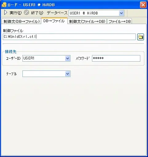 1.「制御文(DB→ファイル)」タブより「制御文ファイル」を出力します。