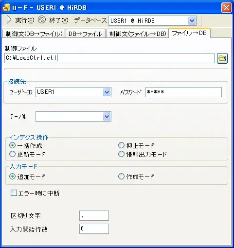 1.「制御文(ファイル→DB)」タブより「制御文ファイル」を出力します。