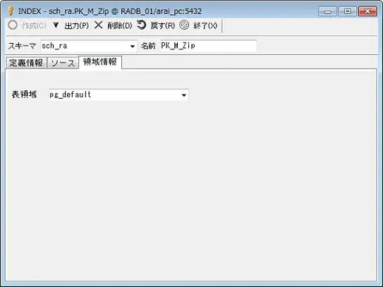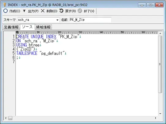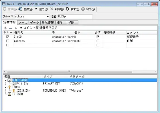 下段にはこのテーブルに従属する制約、索引、トリガーが一覧表示されます。