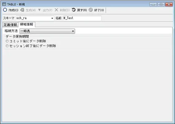 [定義情報]タブ、または[ソース]タブに設定された情報を元に テーブルオブジェクトを作成または変更します。 設定が変更されていない場合や[データ]タブを開いている時は 使用できません。 |