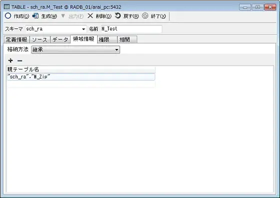 ]ボタンで項目の追加、削除ができます。オプション画面[定義情報タブ]の「SQL文に領域情報を含める」がチェックされた状態であれば、