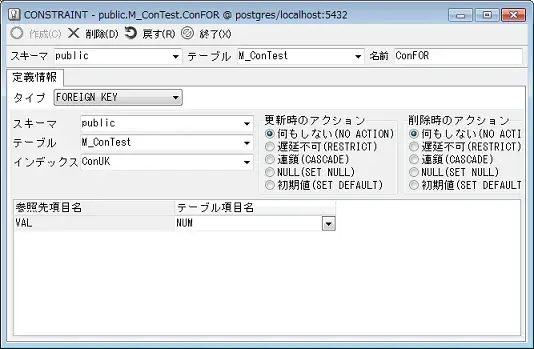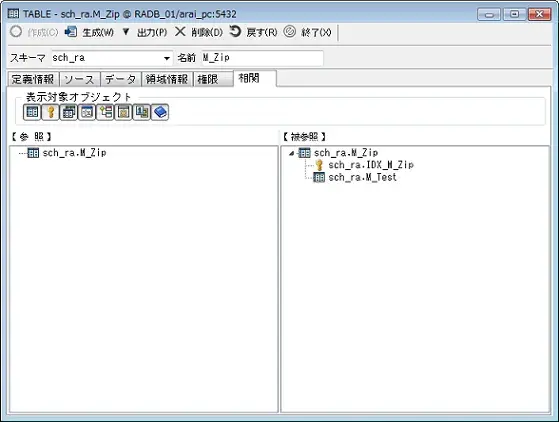 画面中段では参照整合性の対象となるテーブル名及びスキーマ、