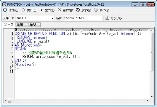 サンプル]ボタンを押すと、サンプルコードを参照することも出来ます。サンプルコードを参照することで、PL/SQLの構文など、基本的なことがわかります。