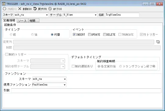 トリガの発生タイミングをSET CONSTRAINTSを使用して調整できます。 ※制約トリガーはAFTER ROWトリガでなければなりません。