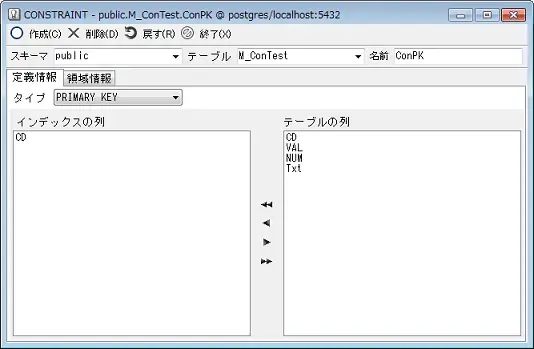 画面上段に制約を作成するテーブル名とスキーマ、制約の種類を設定します。