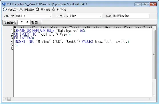 作成]ボタンを押した場合、修正した情報によりObject BrowserはDROP RULE および CREATE RULE文を発行します。
