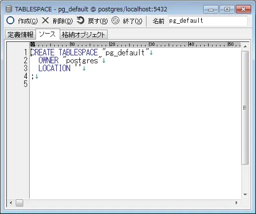 テーブルスペース情報を新規作成する為の画面を表示します。