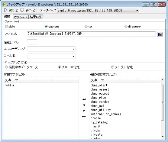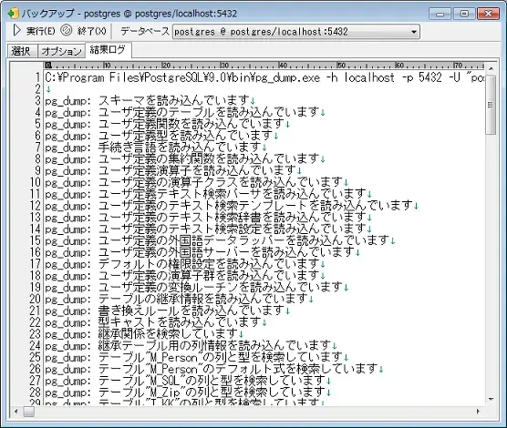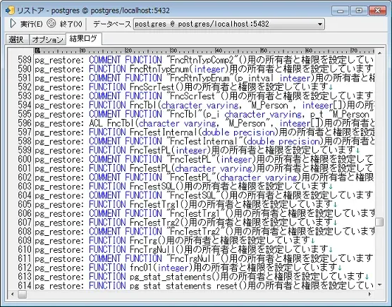 postgreSQL のリストアユーティリティ[pg_restore]を使って、オブジェクトのリストアを行います。