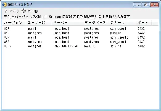 各バージョンのObject Browser に登録されている接続先リストが表示されますので