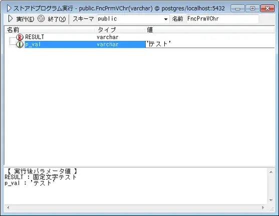 (※指定しないとデフォルト値 /h=localhosot /p=5432 /s=指定なし となります)