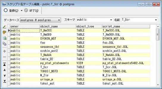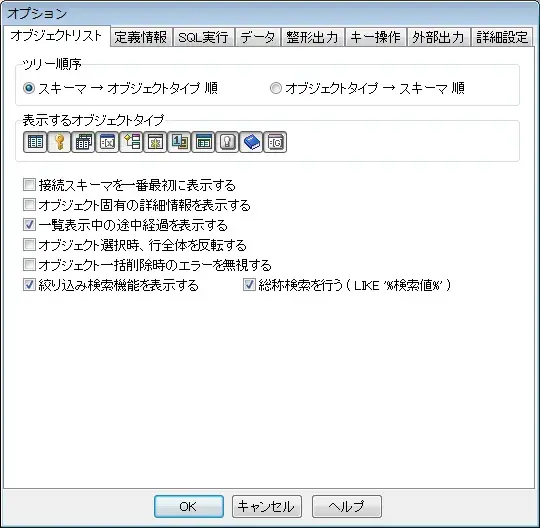 ここで選択したスキーマ、オブジェクトタイプに該当するオブジェクトの一覧が