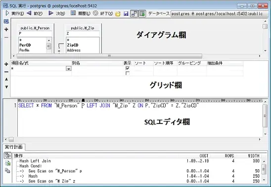 SQL文を実行するためのウィンドウを表示します。 (→ 3−5参照) |