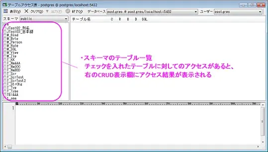 Postgresに対して発行されている生SQLをキャッチします。 (→ 3−9参照) |