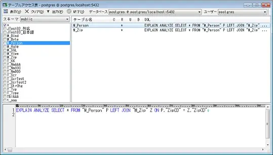 SQL文を入力し、解析ボタンを押します。以下の情報が表示されます。