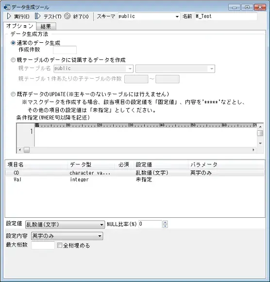 データを投入するテーブルが、親テーブルと従属関係にある場合、 親テーブルの1件あたりに対するデータ投入件数の範囲を指定します。 |