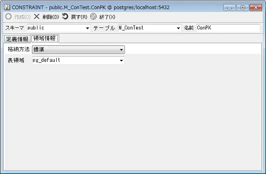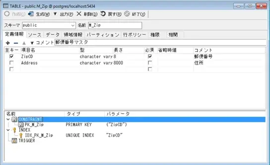 下段にはこのテーブルに従属する制約、索引、トリガーが一覧表示されます。