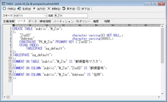 テーブルを作成した際のSQL文が表示されます。