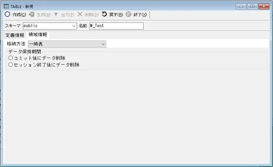 一時テーブルのデータ保持期間を設定する事が出来ます。