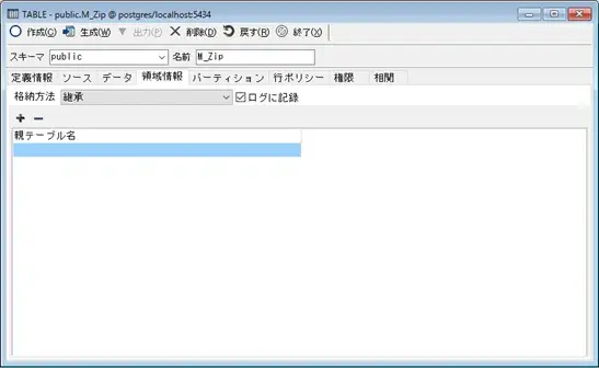 画面上部のリストに選択中のテーブルに関連する継承テーブルが表示されます。