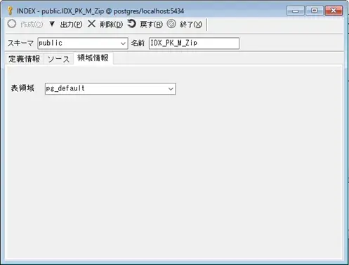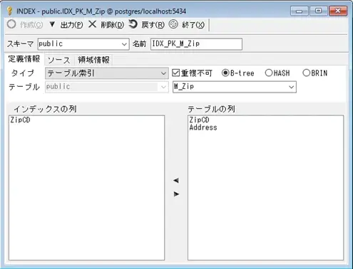 画面下段のグリッド項目に上記で設定したインデックスの項目一覧が表示されますので、