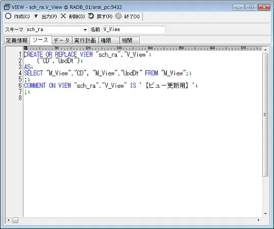 マテリアライズドビューを作成した際のSQL文が表示されます。