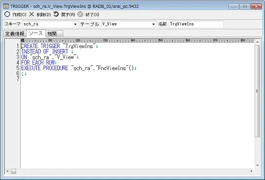 作成]ボタンを押した場合、修正した情報によりObject BrowserはDROP RULE および CREATE RULE文を発行します。