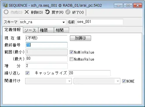この値に[増分]を加えた値が次回のシーケンス番号となります。