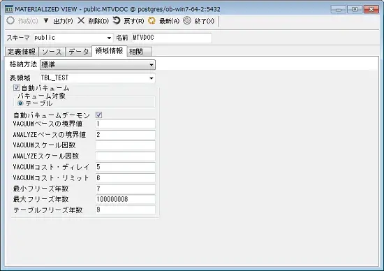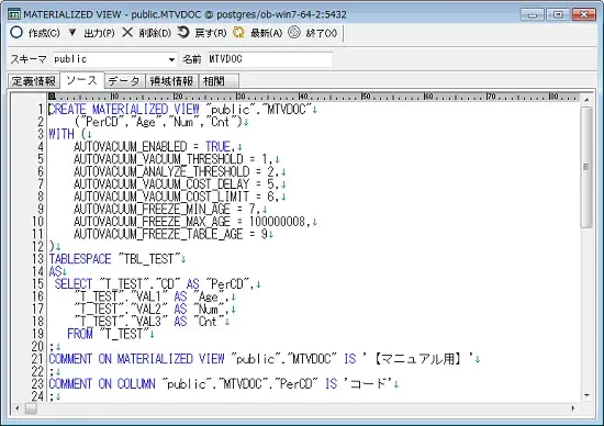 作成]ボタンを押すと、マテリアライズドビューオブジェクトを再作成する事ができます。