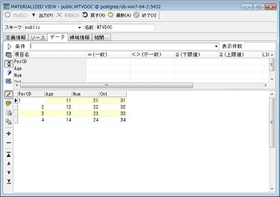 マテリアライズドビューのデータを表示します。