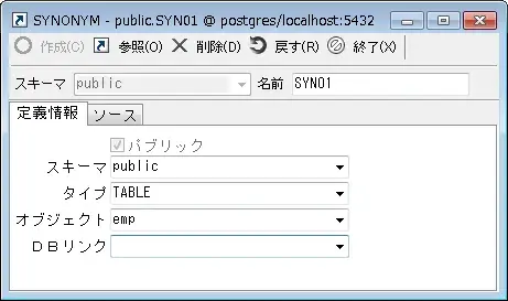 作成]ボタンを押すと、シノニムオブジェクトを変更する事ができます。