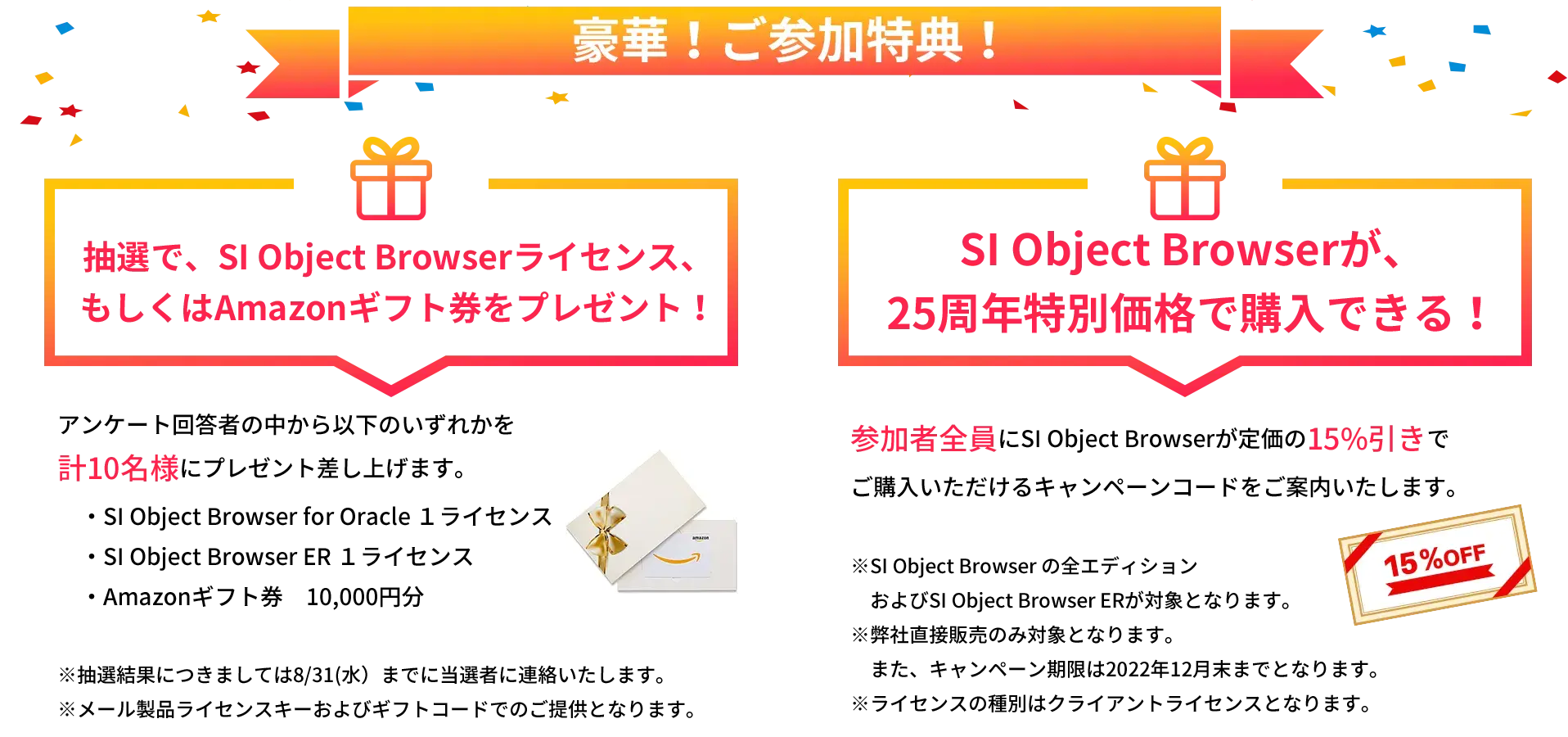 アシスト様からはデータベースの最新事情、そして弊社よりSQLテクニックノウハウやSI Object Browserの使い倒しテクニックなど、盛りだくさんでお届けいたします! もちろん、ご参加は無料です。